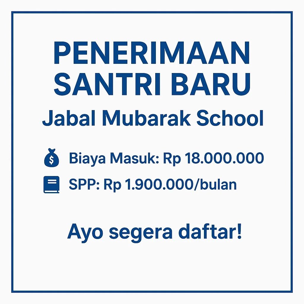 Telah Dibuka Penerima Santriwan & Santriwati Baru/Pindahan Tingkat SMP&SMA Program Tahfidz Al Qur'an 30 Juz Bersanad dan Bahasa Arab Aktif Tahun 2025/2026